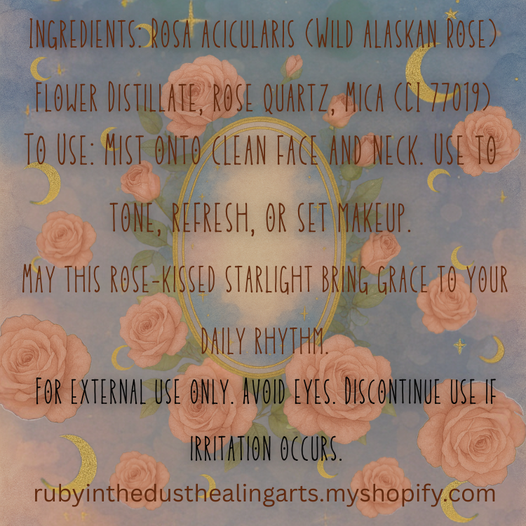 Distilled beneath northern skies from wild Alaskan roses, this sacred mist is more than skincare—it is a veil of love, beauty, and intention.